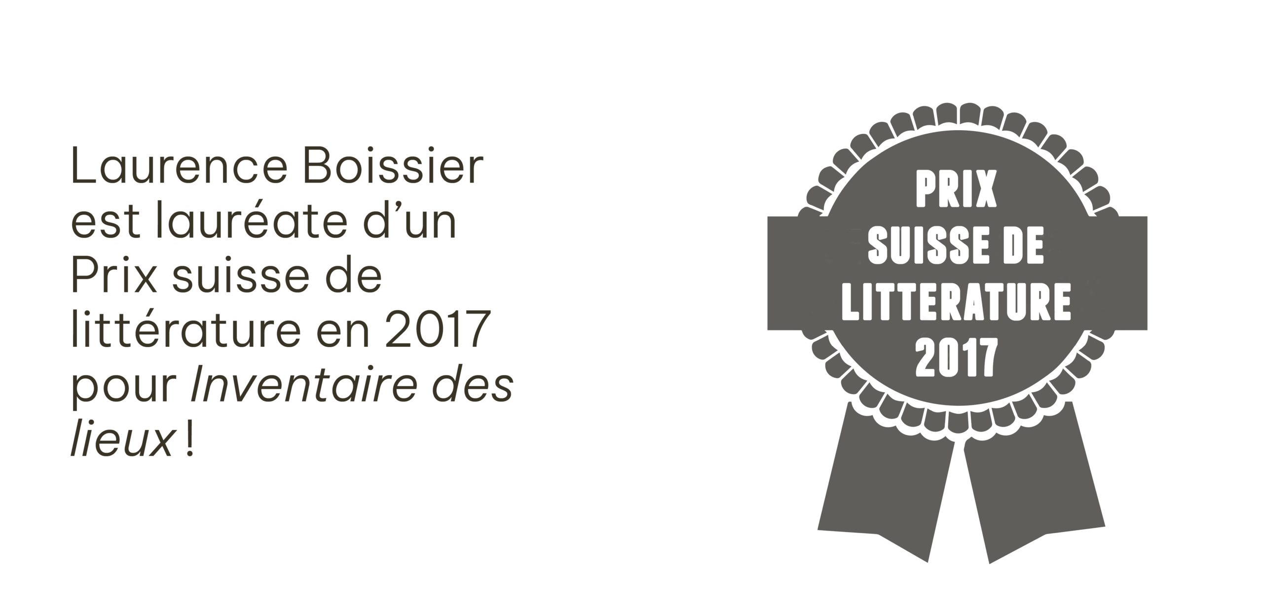 PRIX: Prix suisse de littérature, 2017; Prix des lecteurs de la Ville de Lausanne, 2018; Prix Pittard de l’Andelyn, 2018