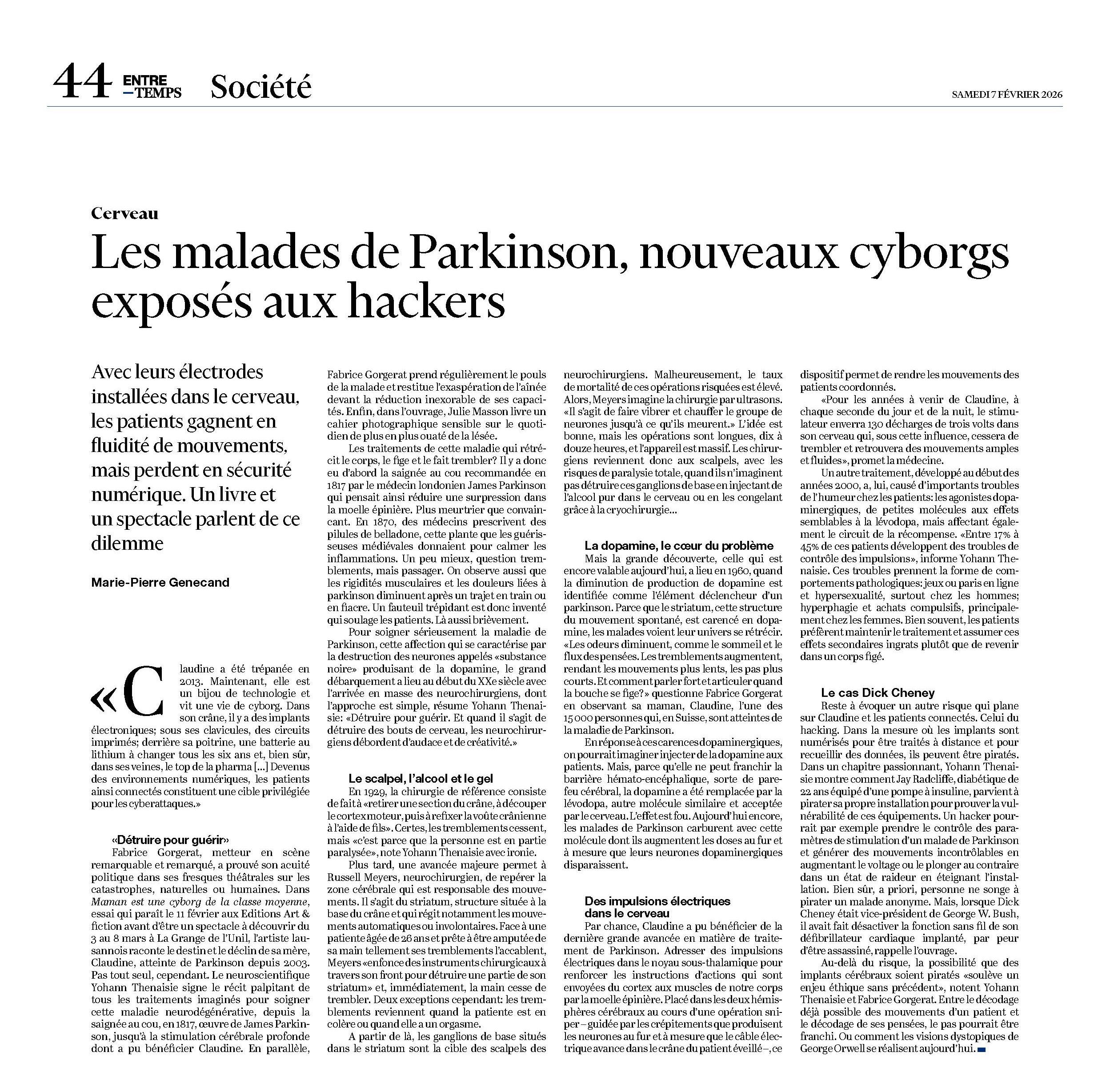 «Les malades de Parkinson, nouveaux cyborgs exposés aux hackers» par Marie-Pierre Genecand