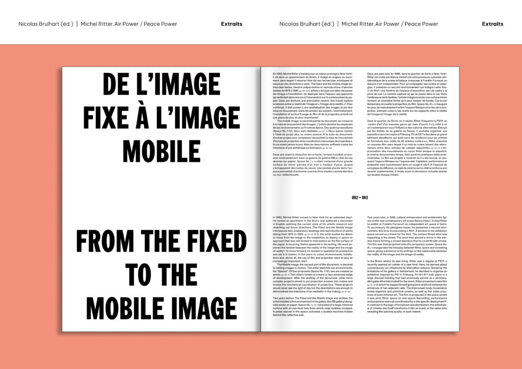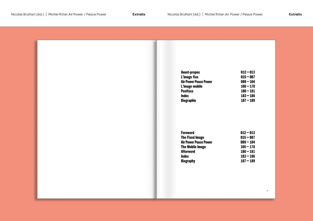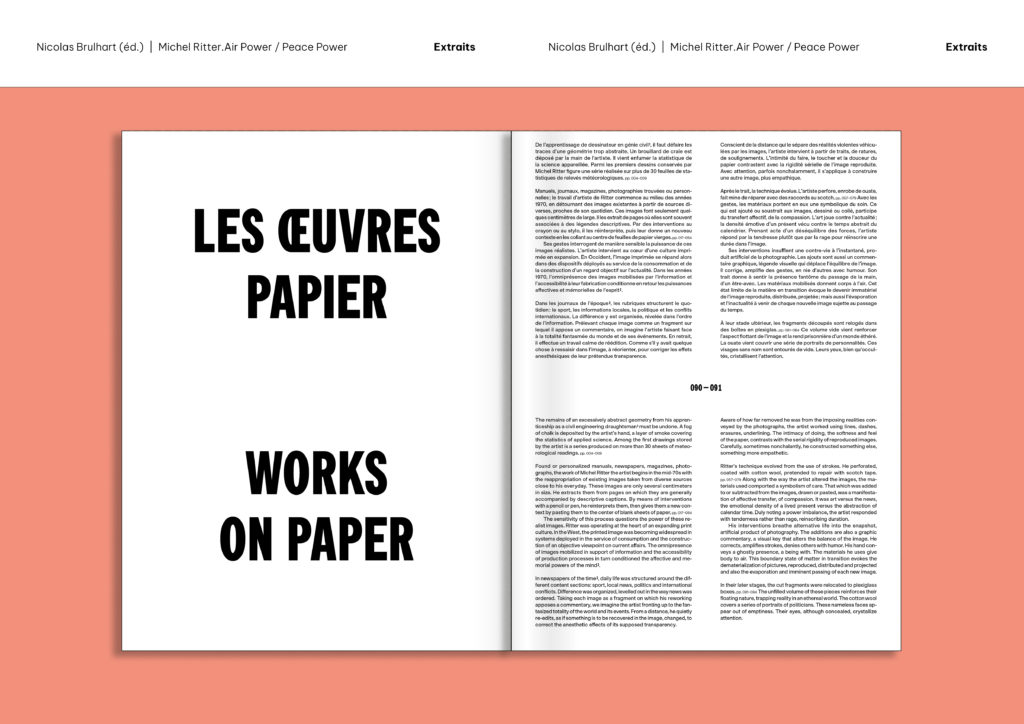 Cette première monographie consacrée à Michel Ritter fait suite à l’exposition éponyme ayant eu lieu à Friart en 2021. Nicolas Brulhart, directeur artistique de Friart (2019-2025), rend ici hommage à l’artiste qui avait mis de côté son propre travail afin de se mettre au service d’autres artistes. Dans l’ouvrage, collages sur papier, films, installation, interventions in situ et archives témoignent de la poétique évanescente et sensible d’un artiste qui place l’énergie au cœur de son œuvre à la fois critique et poétique. Des années 1970 à 2000, entre la Suisse, Paris et New York, Michel Ritter a déployé une œuvre d’une grande cohérence à partir de plusieurs influences notables: une sensibilité critique à l’égard des visions occidentales, inspirée par ses voyages de jeunesse autour du monde, les pratiques conceptuelles, les stratégies picturales et médiatiques de l’art des années 1970. Par des interventions minimales, en détournant des images du quotidien ou en recomposant des objets usuels, l’artiste offre un regard oblique sur l’environnement visuellement saturé de la fin du siècle passé. Il participe à ce tournant anthropologique de la culture visuelle, qui déploie l’image dans ses différentes dimensions: architecturale, sociale et mentale.